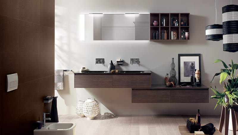 獨特又極簡的線條,是這款Rivo義大利浴櫃的特色。吊掛式的面盆收納櫃,四十五度的無把手門片設計,以及吊櫃的造型,在在強化以極簡造型,體現十足的浴室家具功能。極簡的造型、模組化的單元,是Rivo系列的主要概念。運用這兩個元素,浴室的設計,將充滿想像力。在設計巧思下所沉澱的造型與風格,完全實踐浴室空間的實用性與獨創性。