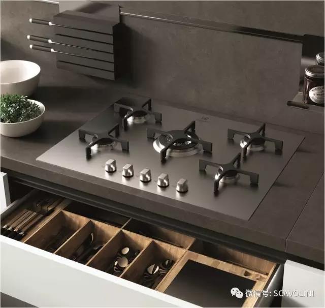 Scavolini的抽屜設計通過了嚴格的測試,在關閉時只需輕輕一推,就好像是用手將它放進櫃子中一樣。