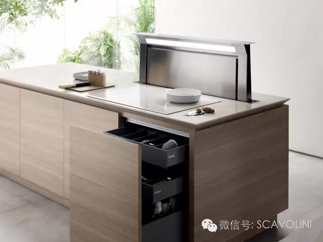 特殊設計的煙機罩使得Nendo設想的整個場景渾然一體。